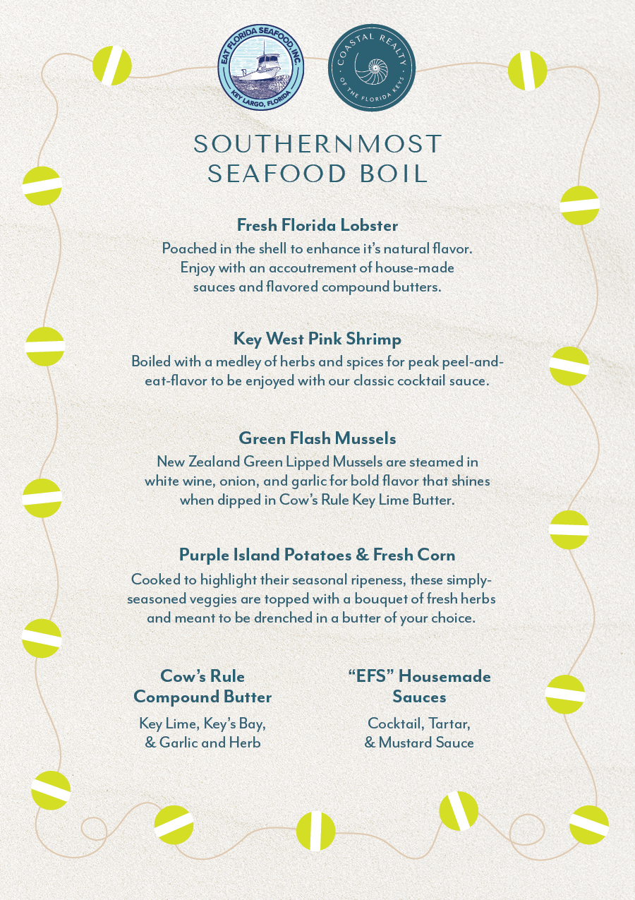 Whether you’re used to sipping rosé on a dock in Montauk or cracking claws on a picnic table in Marathon, this is your invitation to turn up the charm and host a seafood boil with tropical soul and a coastal wink.